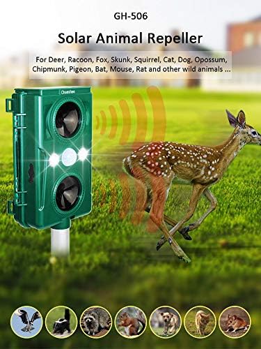 ![]() | Chanshee Newest Two Sound Wave | Newest Two Sound Wave Speakers Solar Powered Animal Repellent. | Check On Amazon |